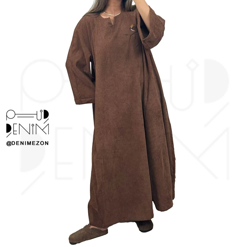 پیراهن آلما مخمل کبریتی قهوه ای تیره