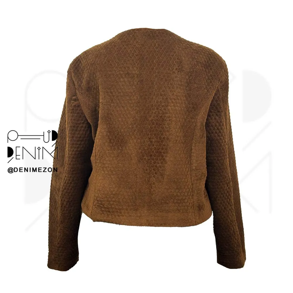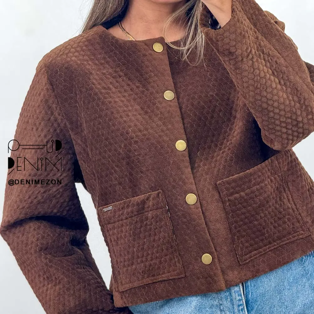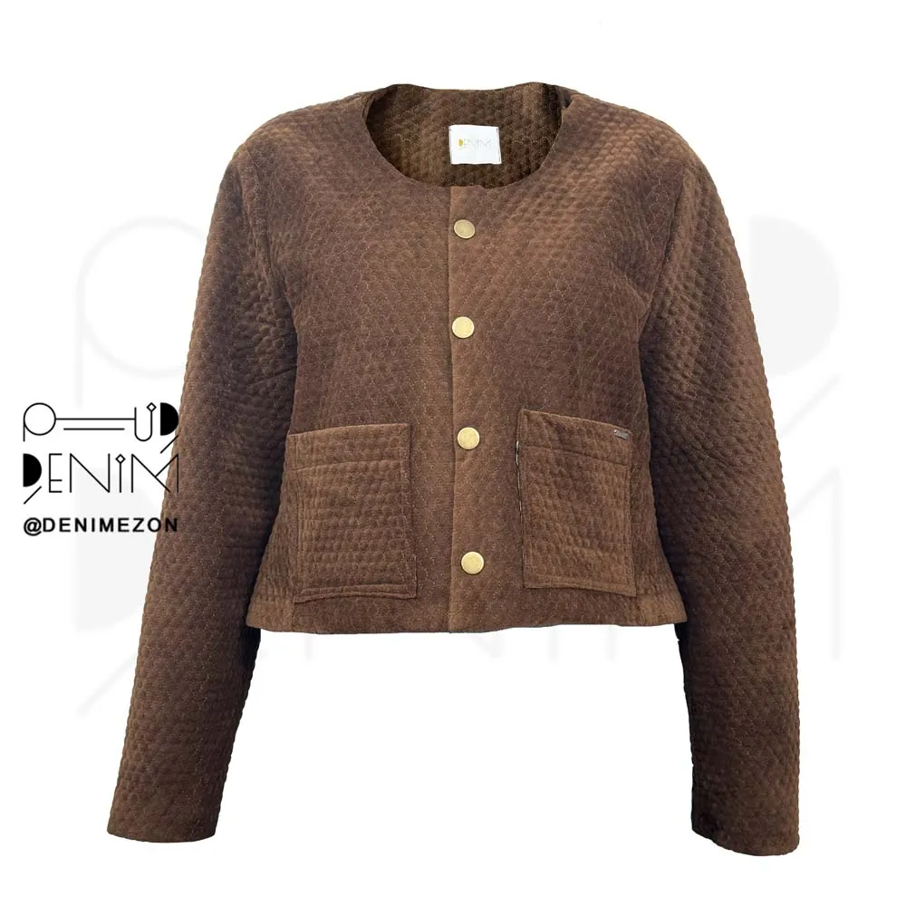 کراپ کت سابرینا – قهوه‌ای مخملی، لوکس و همه‌پسند